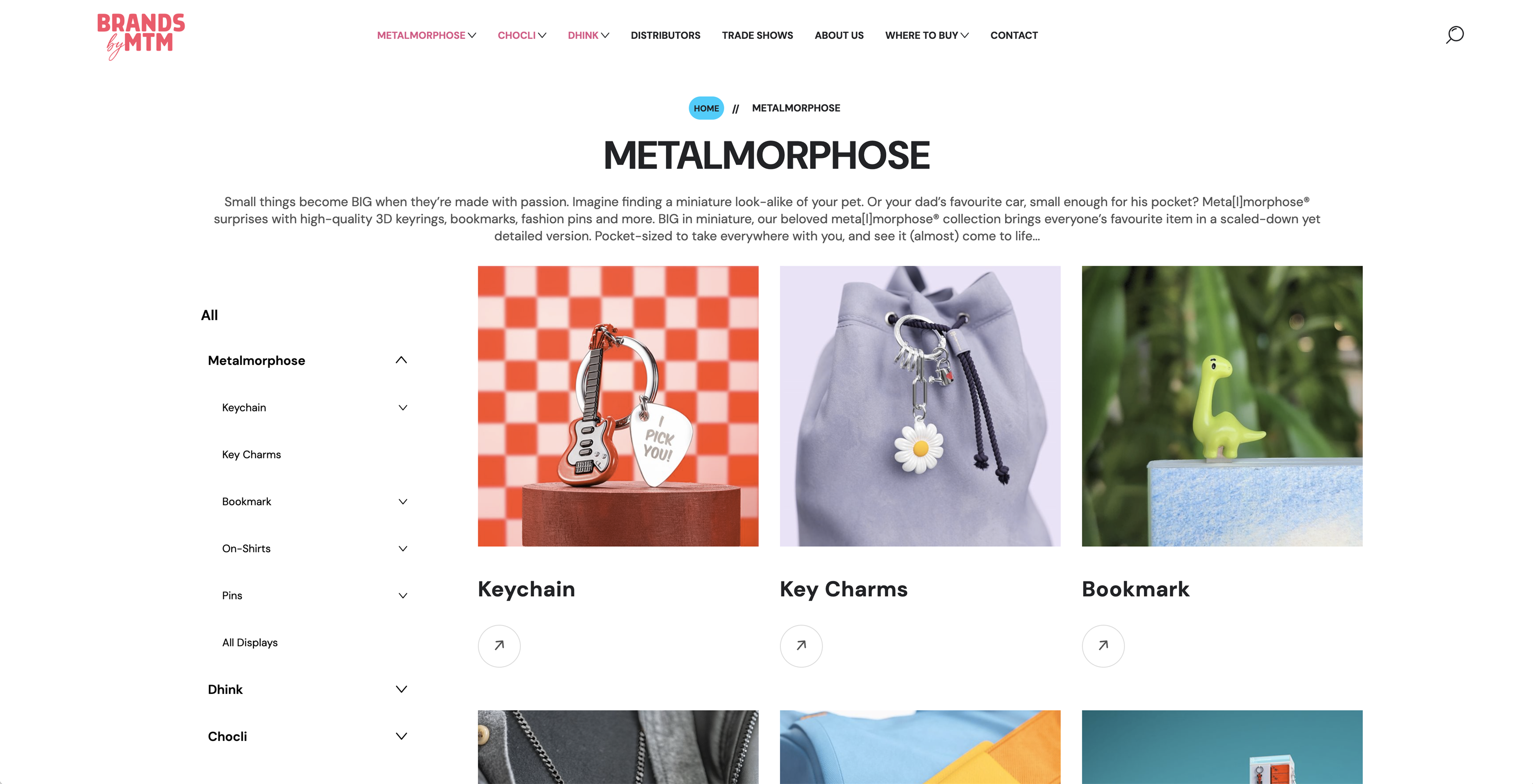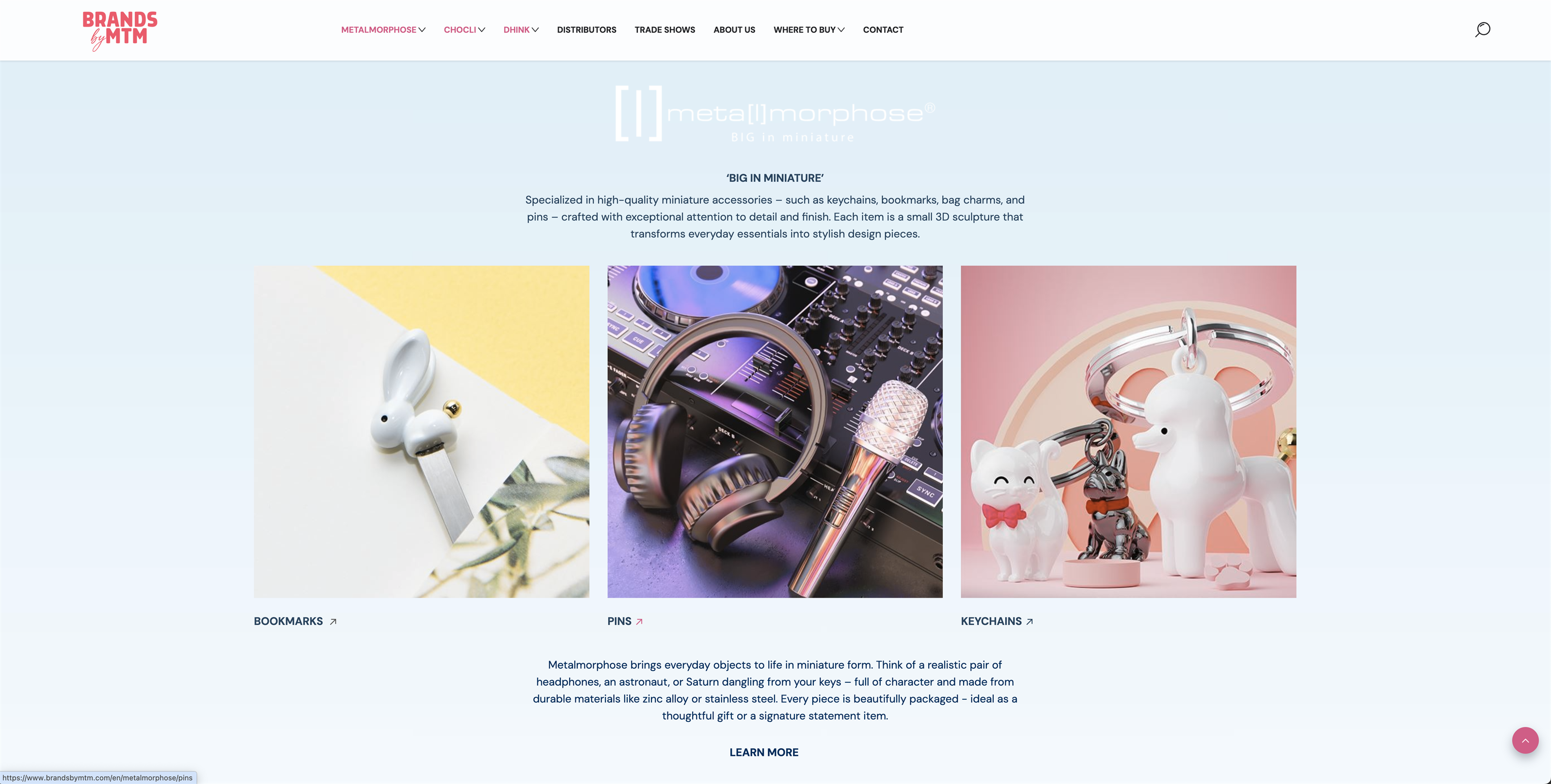 Große, stimmungsvolle Bilder und kreative Zitate lassen die Traumwelt von MTM lebendig werden. Besucher spüren sofort die Magie hinter jedem Produkt. - Übersichtliche Produktlinien