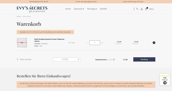 Evy's Secrets war auf der Suche nach einem professionellen Website-Ersteller, um ihren Webshop neu zu gestalten. Sie fördern den Verkauf ihres Schmucks und ihrer Piercings durch eine Google Ads-Kampagne, so dass ein Link zum Merchant Center notwendig war.